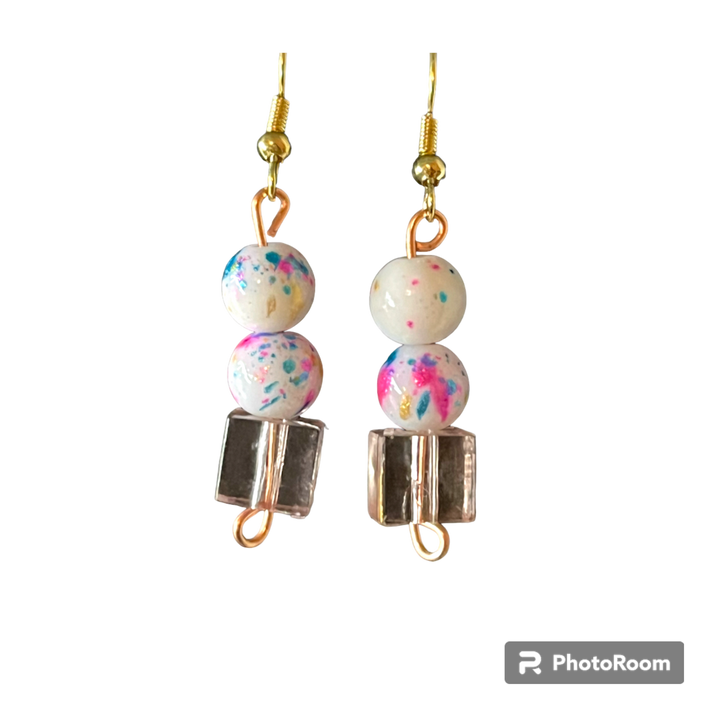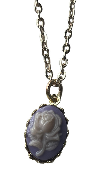 Necklace: Purple tinted Beads threaded through wire attached to a golden chain.
